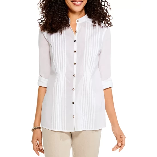 - Long sleeves with double-snap cuffs and snap-tab for rolled cuffs