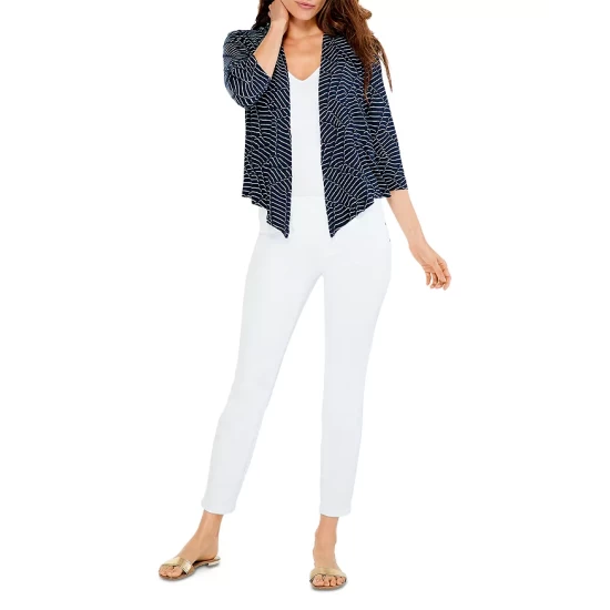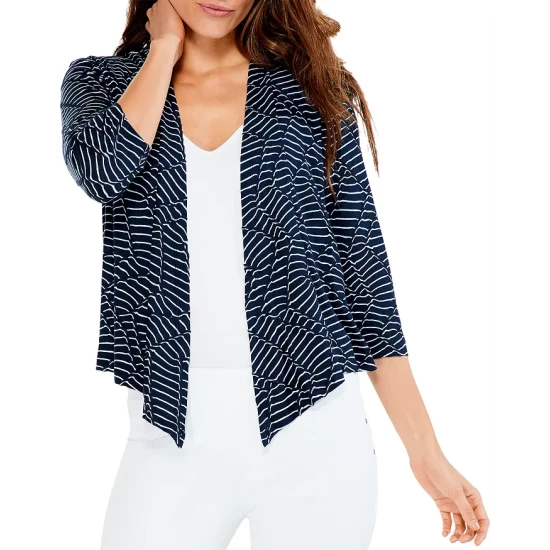- Draped front (when worn open)