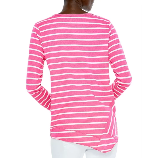 - Asymmetric hem with angled side panel