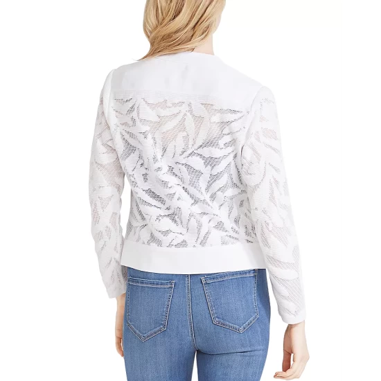 - Sheer burnout pattern at body, solid trim at placket, hem, cuffs and back yoke