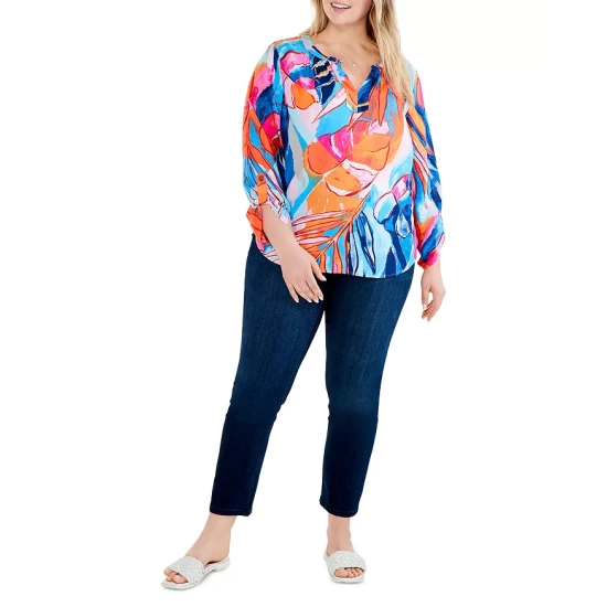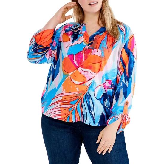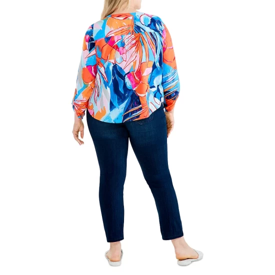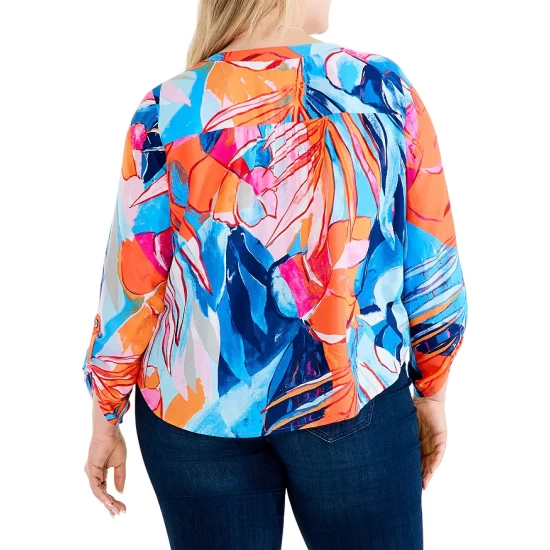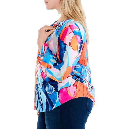 - Three-quarter length sleeves with roll tabs